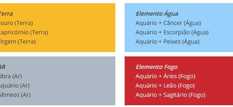 Read MoreClique na combinação desejada ! Elemento TerraAquário + Touro (Terra)Aquário + Capricórnio (Terra)Aquário + Virgem (Terra) Elemento ARAquário + Libra